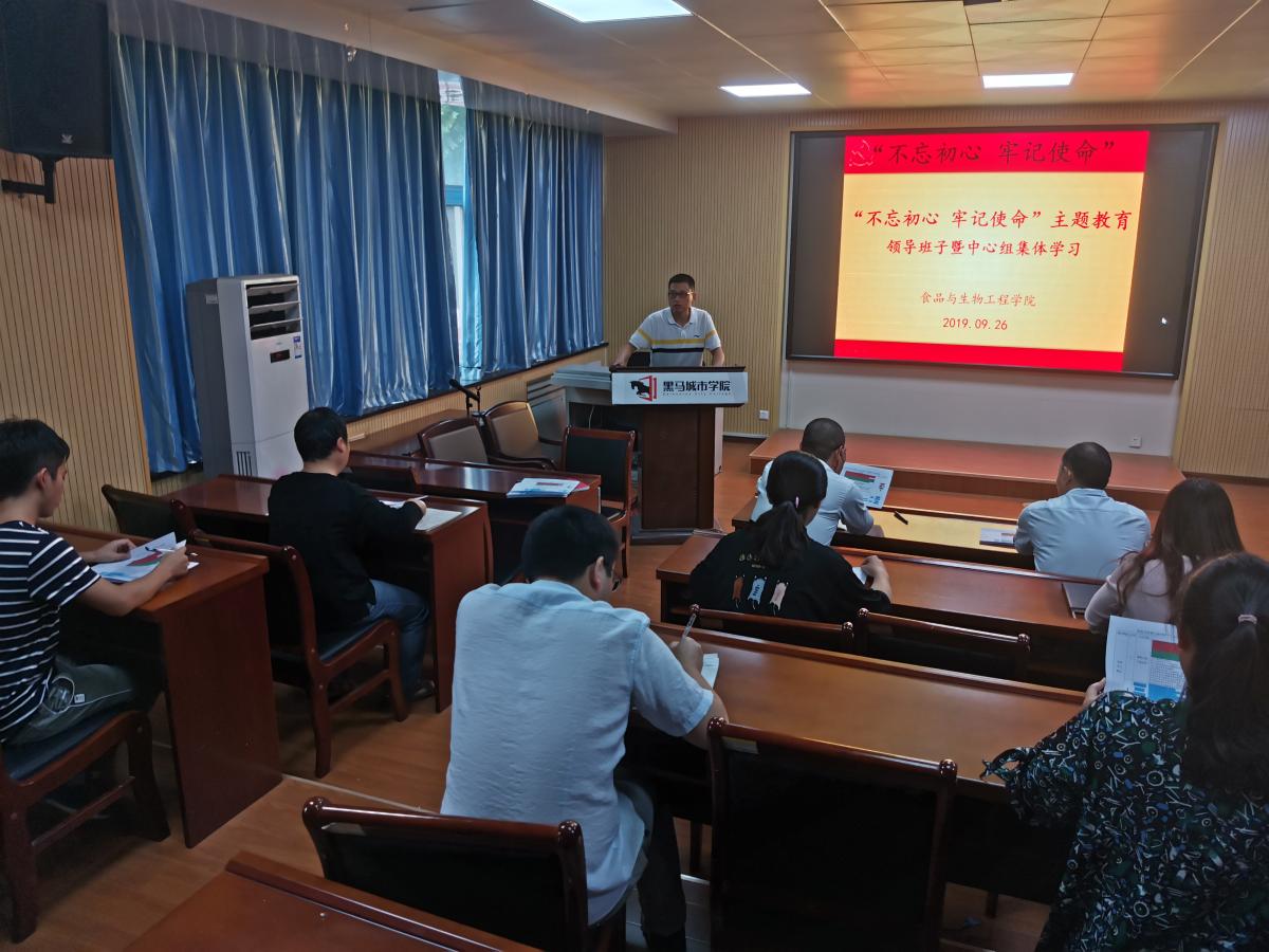 9月26日,食品与生物工程学院党总支理论学习中心组召开“不忘初心、牢记使命”主题教育第一次集中学习,党总支理论学习中心组全体成员和学生党支部委员参与。