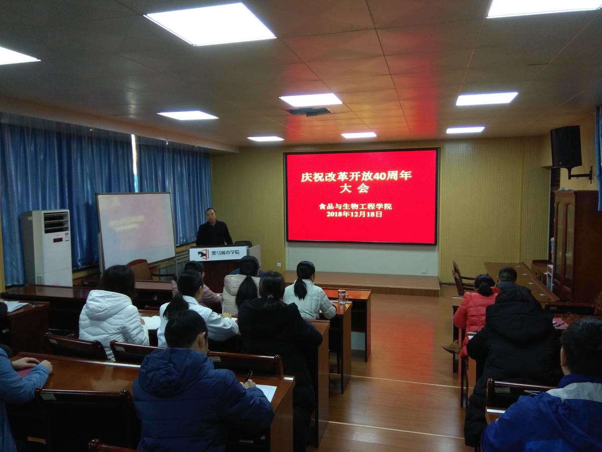 2018年12月18日上午10时,庆祝改革开放40周年大会在人民大会堂举行,隆重庆祝改革开放40周年,回顾改革开放40周年光辉历程,深刻总结改革开放宝贵经验。按照校党委统一部署,我院组织全体教职工在食品楼二楼报告厅集中收看大会。