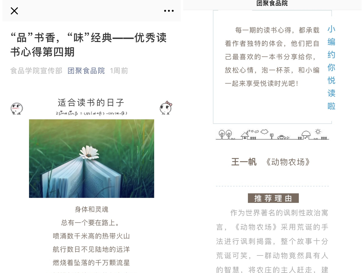 16,17级各班级根据本班的实际情况开展读书分享活动,班级同学通过优秀选段朗读,PPT展示等形式向同学们展示自己的读物以及对自己的深刻影响,同学们展示完毕后,由班级负责人进行优秀读书心得的评选,同时,优秀读书心得在院系公众号推送,供同学们阅读和学习。通过本次班级评选环节,将同学们学习的知识进行资源共享。