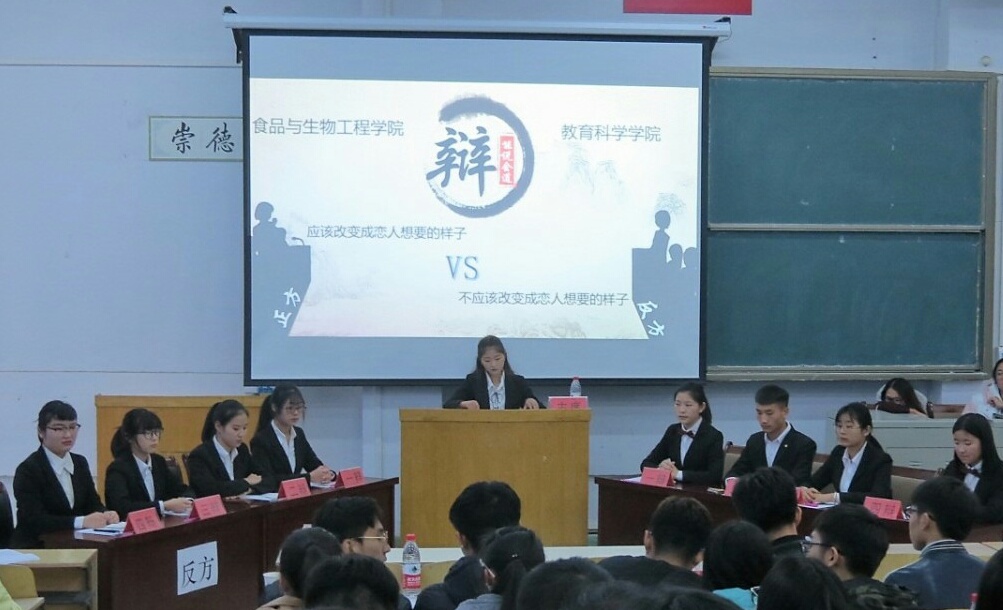 本次辩论赛分为初赛、复赛、决赛三个阶段,历时16天。其中初赛、复赛在A合八、A合九教室举行,决赛于12月3日在食品楼报告厅举行。