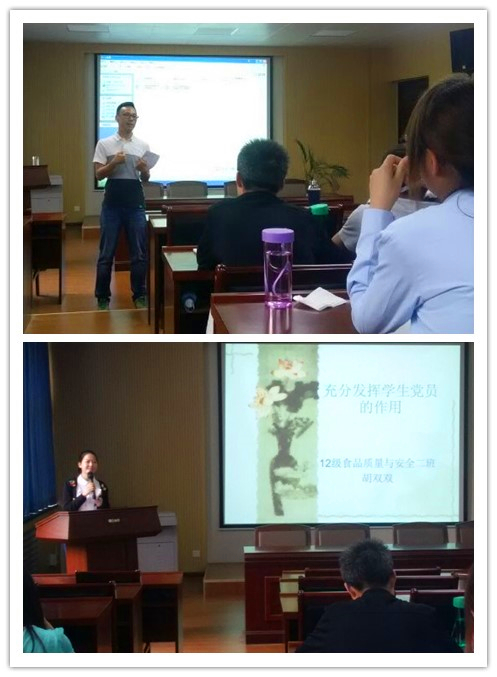 下午的第一讲由12级学生党员、学生党支部书记胡双双开讲,她以“充分发挥学生党员作用”为主题,向同学们详细介绍了学生党员在学生工作和校园先进文化建设中发挥的重要作用,并结合自身体会讲述了自己大学四年的收获和感悟。