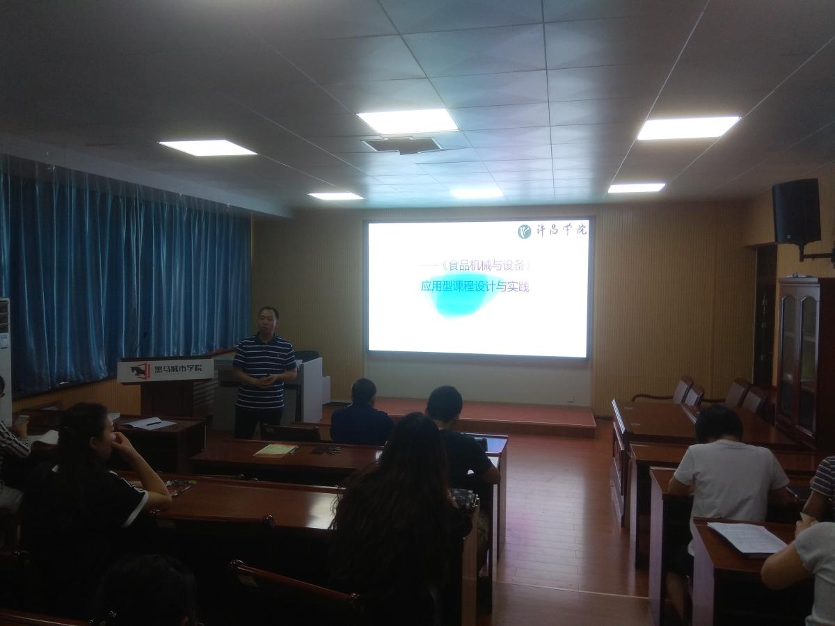 为进一步提升我院应用型课程建设水平,激发教师进行课程建设和教学改革的兴趣,夯实人才培养基础,我院于2019年5月24日下午于食品楼二楼报告厅开展了应用型课程建设交流活动。本次活动邀请了城乡规划与园林学院徐永新博士作为特邀嘉宾,以及我院教师郭卫芸博士和李光辉博士,分别就《环境影响评价》、《食品机械与设备》和《食品添加剂》的应用型课程建设情况进行了交流和汇报。三位教师分别就相关课程的建设的具体做法,结合自身课程建设过程中的心得与体会,从课程概况、课程设计、课程实施、课程评价等方面进行了详细的介绍,我院全体教师参加了交流。