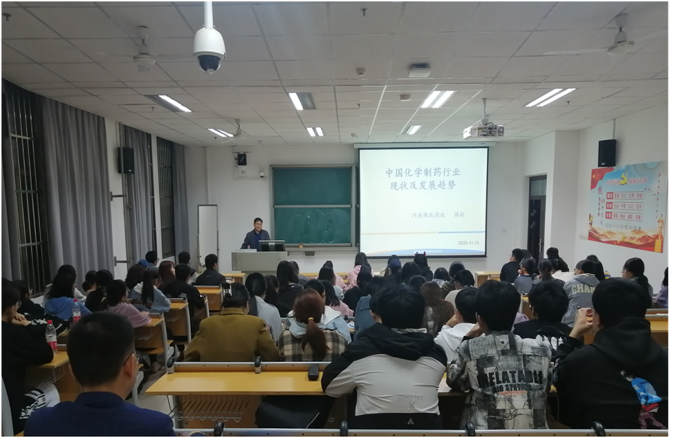 2020年11月11日晚19:00,应我校yl8cc永利官网邀请,河南豫辰药业股份有限公司总经理傅收作了题为“中国化学制药行业现状及发展趋势”的学术报告。报告在E-104教室举行,2019级制药工程专业全体学生及其他班级的部分学生参加了报告会。