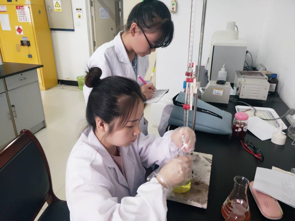 我院“市售酱油及品质分析调研实践队”于7月12日开展暑期社会实践实验操作的第二天。经过细致明确地责任分工后,韦梦婷、龚兰玉和王晴三个人负责酱油中可溶性无盐固形物的检测,支红丽和宋柯佳负责酱油中全氮的测定,邢栓小、孙立雪、乔俊晓以及郑文亮负责酱油中氨基酸态氮的测定。