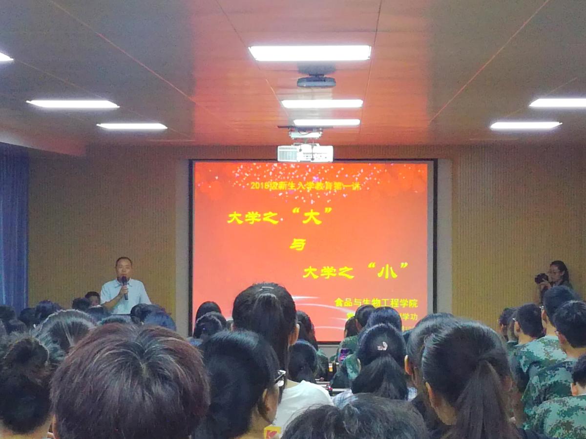 送别热浪灼人的盛夏,踏着习习秋风,我院迎来了2018级新生。为了让新生更快的适应大学,更好的融入大学,我院党总支书记刘学功于9月10日晚在食品楼二楼报告厅为18级新生开展入学教育。