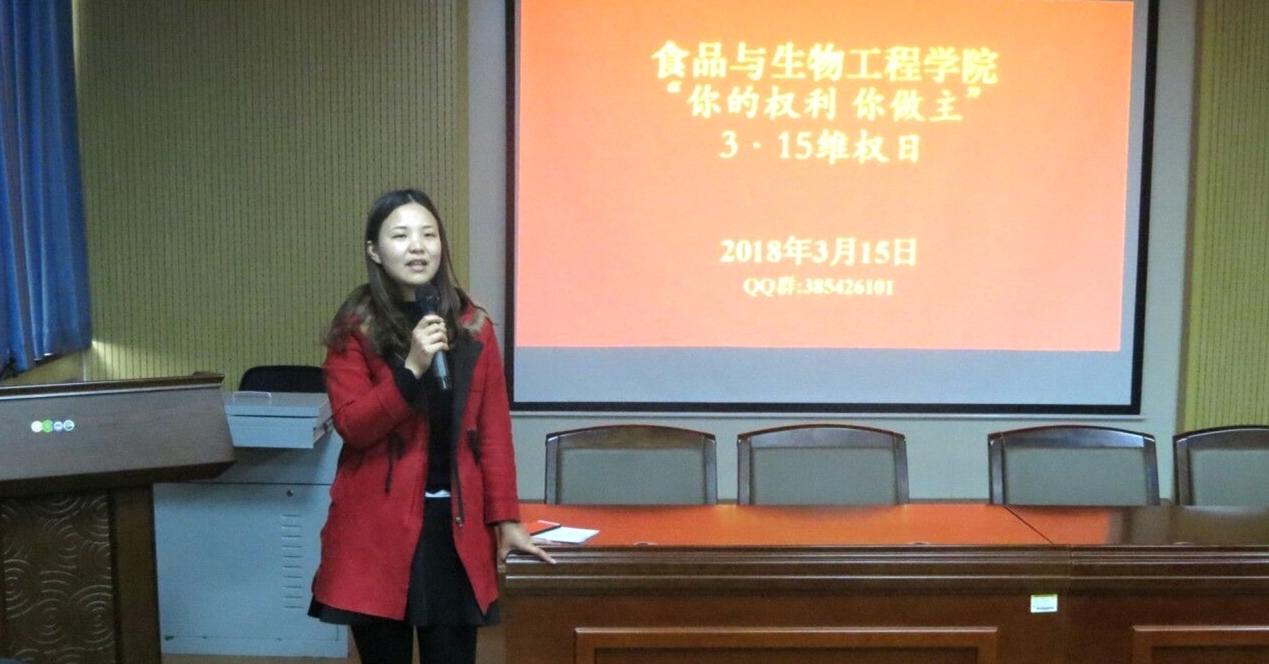 为了纪念3月15日消费者权益保护日,也为了让我院学生更加深入地了解《消费者权益保护法》等法律条文及维权知识,3月15日中午12点40分,我院团总支学生会权益部在食品楼二楼报告厅举办了主题为“你的权利,你做主”的活动。