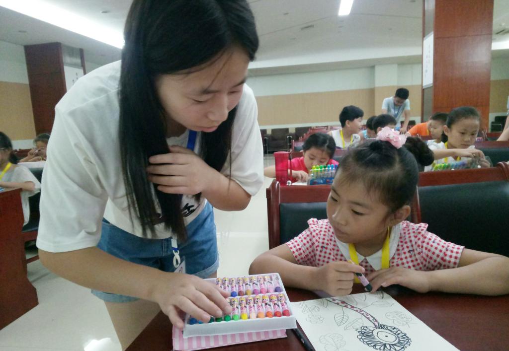 上午8点半,队员们顺利到达目的地,开始了“爱心飞翔”暑期夏令营绘画活动的准备工作。队员们把报名表,孩子们的号码牌,电脑等一系列东西准备就序后,参加活动的小朋友们便纷纷到来。首先老师为大家讲述了梵高的生平事迹,队员们和小朋友们一样听得津津有味。接着老师向大家展示了梵高的作品《向日葵》,要求小朋友们凭借着自己的想象画出自己心目中的向日葵。队员们积极地帮助小朋友们削铅笔,挑颜色,他们一边绘画一边交流,队员们用自己的行动帮助孩子们遨游在画画的海洋中,让他们感受其中的奥妙,气氛浓烈。