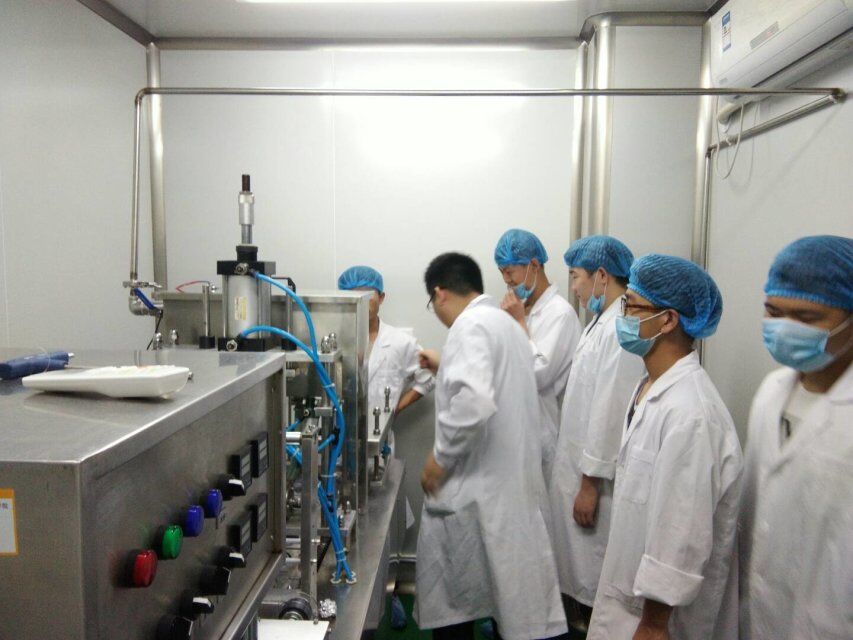 7月1日上午8点30分,实践队员在指导老师李光辉的带领下,进入酸奶实训室,开始一天实训活动。首先李老师详细地向同学们介绍了酸奶的制作流程,进行制作前的准备工作。在清洗仪器的过程中,李老师逐个讲解了操作间的仪器使用方法及其在酸奶制作中所起到的作用。仪器清洗完毕,在老师的协助下,队员们一起合作把鲜牛奶倒入仪器进行加热搅拌。每位同学都积极投入实践过程,仔细观察制作流程、仪器运转方式,遇到不明白的地方相互讨论。接着在老师的指导下队员们准确称取菌种加入到仪器中,一段时间后利用半自动化机器对酸奶半成品进行灌装,放入发酵柜,在特定的温度下进行六个小时的发酵。最终一杯杯美味营养的酸奶在队员们的团结协作下制作完成。