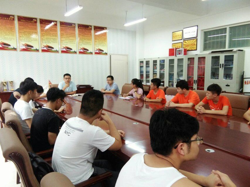 6月30日下午,为使同学们明确酸奶制作的流程,我院“青春曙光”实践队全体成员于食品楼二楼会议室召开了培训会议。团总支书记陈荣华,党总支副书记李鹏,酸奶实训指导老师李光辉参加了本次会议。会上,党总支副书记李鹏讲解酸奶是以纯牛奶,白砂糖为原料,向其中添加有益菌,经发酵、冷却、灌装等过程形成的牛奶制品。他强调,参与实践的同学要端正态度,团结协作,共同完成酸奶实践活动。会后,大家一起品尝了我院自制的酸奶,他们表示没有食品添加剂的酸奶与市场上销售的相比更加纯正,爽口。