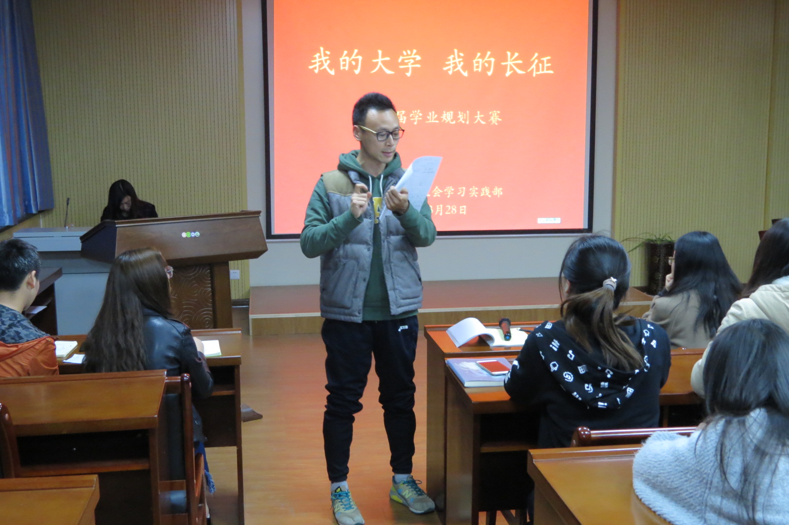 为引导我院大一学生树立正确的学业规划理念,制定明确的学业发展目标和学业生活规划。3月28日晚7点,我院在食品楼报告厅举行了“我的大学,我的长征”——第一届新生学业生涯规划大赛。我院团总支书记陈荣华老师和14、15级的职业生涯规划大赛获奖选手代表担任评委。