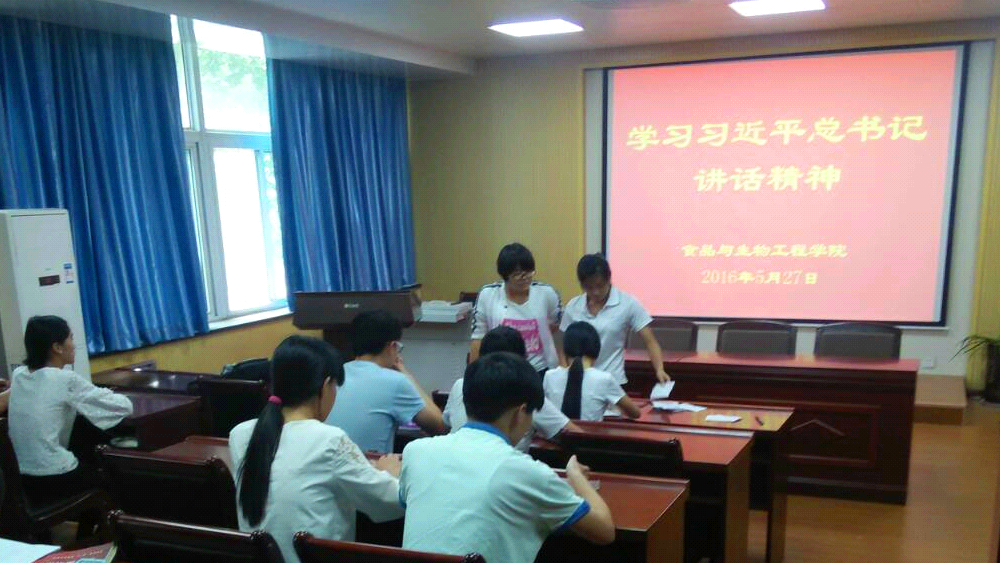 为组织引导我院广大团员青年深入贯彻学习习近平总书记系列重要讲话精神,围绕近期开展的“两学一做”学习教育活动,5月26日下午,我院团总支组织部在食品楼报告厅组织开展了学习习总书记系列重要讲话精神活动,14级和15级学生代表参与了此次活动。