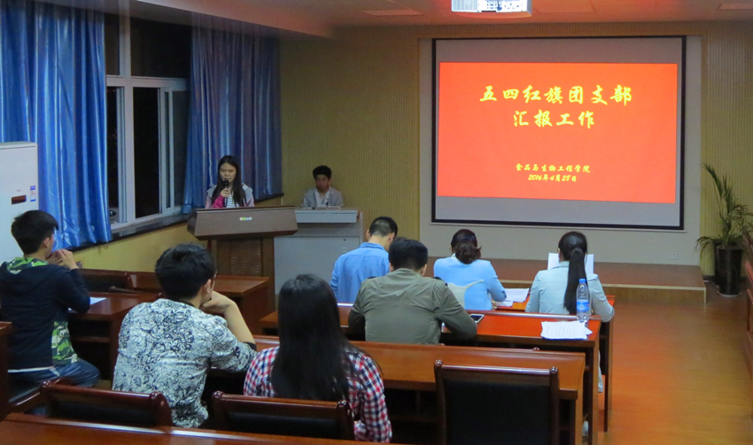 为了加强我院基层团支部建设,提升团支部组织活力,表彰先进、树立典型,我院团总支于4月28日晚在食品楼二楼报告厅开展了2016年度五四红旗团支部评选活动的展示答辩环节。我院团总支书记陈荣华老师、14级辅导员张智超老师、15级辅导员杨晓露老师、团总支副书记沈于粮担任评委。