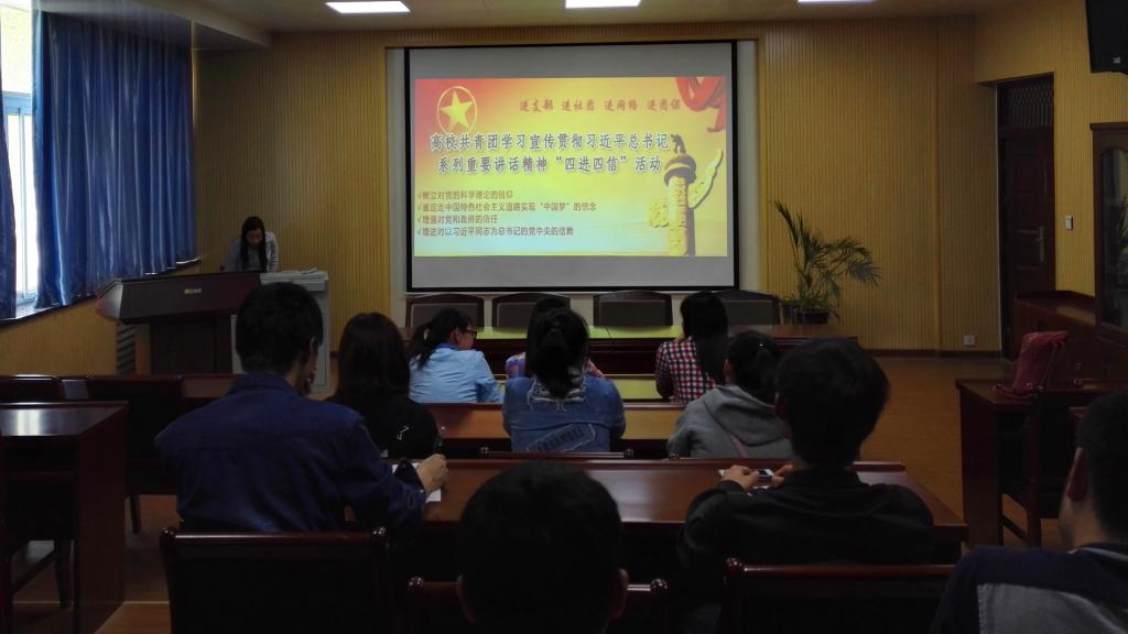 为进一步宣传贯彻习总书记系列重要讲话精神,重点突出讲话中关于青年和青年学生的论述相结合,与马克思主义立场观点方法相结合,与团学工作具体实际相结合的工作方针,我团支部在四月份积极响应校团委“四进我争先,四信我代言”的号召,开展以“四进四信,导航青春四进四信“为主题的团日活动。
