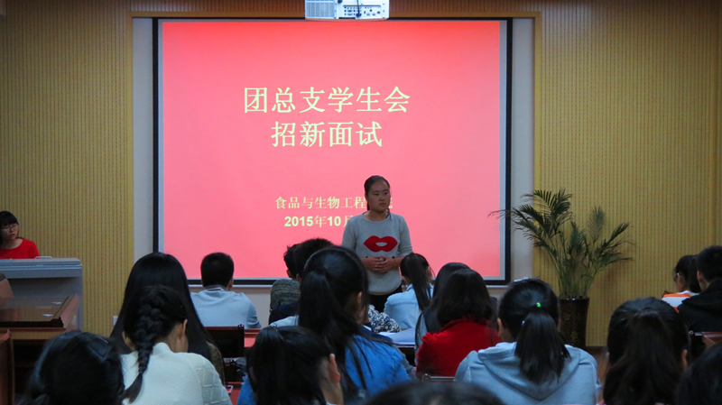 团总支学生会各部门、编外雷锋连、食品营养协会用精美的PPT向同学们详细介绍了本部门、本组织的职能、特色和招新要求,希望更多的2015级新生踊跃加入到团总支学生会和各学生组织中来,为学院的发展贡献力量。整个交流会现场气氛轻松、活跃,内容精彩纷呈,引起掌声不断,不少新生频频发问,跃跃欲试。