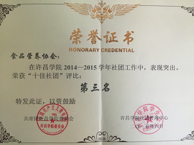 在不久前的共青团工作总结表彰中,我院团总支书记陈荣华老师荣获2014-2015年度“模范团干部”,我院学生会被评为“永利集团官网学生会优秀二级分会”,我院编外雷锋连被评为“永利集团官网编外雷锋营优秀连队”,我院食品营养协会被评为“十佳社团”第三名,其中三项集体荣誉均为我院首次获得。
