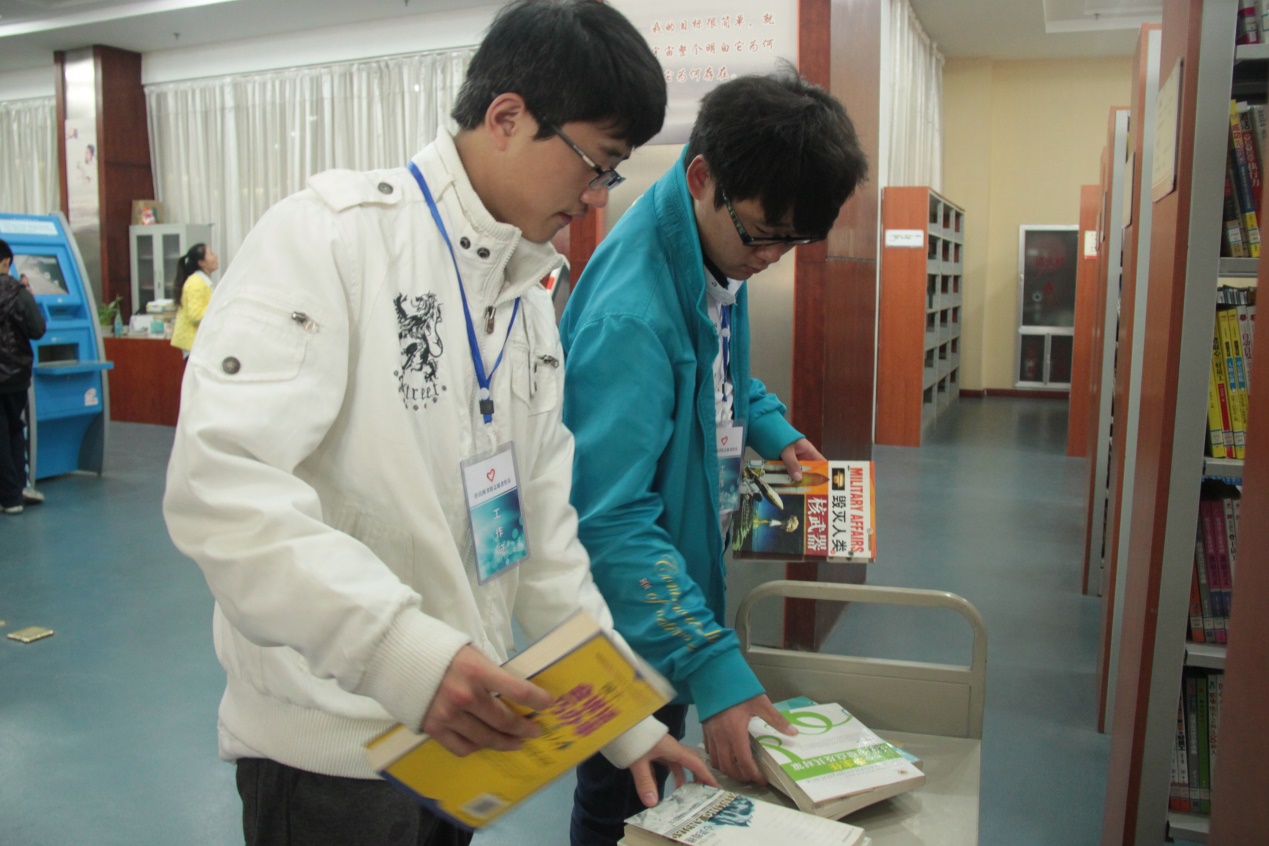 4月10日星期五,我院编外雷锋连以“倡导志愿服务理念,发扬志愿服务精神,搭建读者与图书馆的沟通交流平台”为宗旨,在许昌市图书馆成功开展第一次志愿服务活动。在本次活动过程中,志愿者们学习了如何整理书、如何用自动借书机器等工作,他们积极尝试,热情地与读者交流,获得了一致好评。