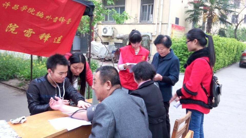 我院编外雷锋连的志愿者们把食品营养小报分发给社区居民,并为他们解答疑问,遇到自己也不确定的知识点就详细记录下来,回去后查找相关资料,以便今后志愿服务活动能更好的开展。同时医学院的志愿者们为社区群众的身体做了一些基本的检查,例如量血压、测心跳等。志愿者们与社区群众热情交谈,活动进展顺利。