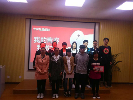 进过激烈角逐,此次大赛共评出一等奖一名,二等奖两名,三等奖三名、优秀奖六名。焦金瑾同学凭借其清晰的思维,良好的表达能力和激情的讲演脱颖而出,荣获一等奖;上官勇和赵均馨荣获二等奖;吴正慧、刘朦朦和张梦梦荣获三等奖;刘会影、赵紫樱、李敏、周海燕、徐艺卉和刘可玉荣获优秀奖。在何庆华副书记为获奖者颁奖后,本次大学生涯规划大赛圆满落幕。
