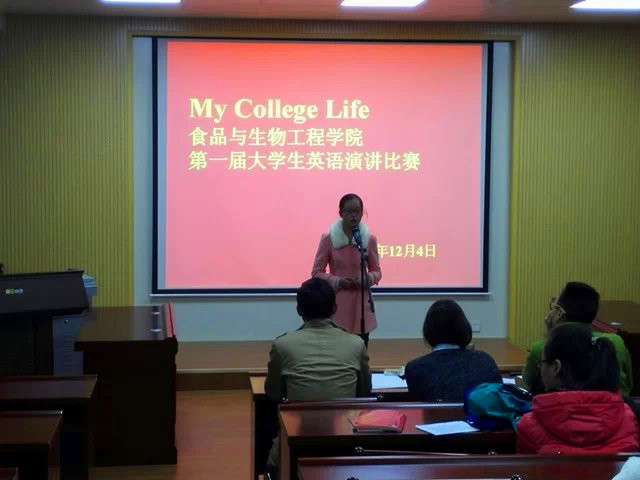为了提高我院大学生的英语口语表达能力,12月4日晚,我院在新建成的学术报告厅举办了主题为“My College Life”的第一届大学生英语演讲比赛。本次活动共有来自12、13、14级的23名选手参赛,党总支副书记何庆华、团总支书记陈荣华、学生会副主席苏建光担任此次比赛的评委。