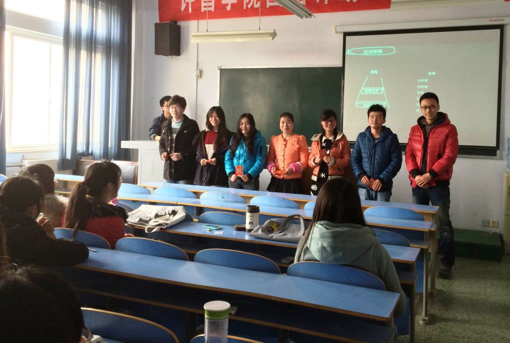 随后辅导员陈荣华老师对他们进行了颁奖和鼓励,对上学期班级工作取得的成绩给予了肯定,同时也对目前班内存在的问题进行分析,他指出同学们以后无论学习还是工作中,在具有遵守纪律性的前提下要学会自我管理,尤其班委要能够主动发现问题并解决问题。同时指出作为大三的学生,除了要在准备考研、考级、考证外将更多精力投入到提高自身综合素质和专业技能的活动和各类竞赛中,做到理论实践更好的结合,适应社会对专业人才的要求。