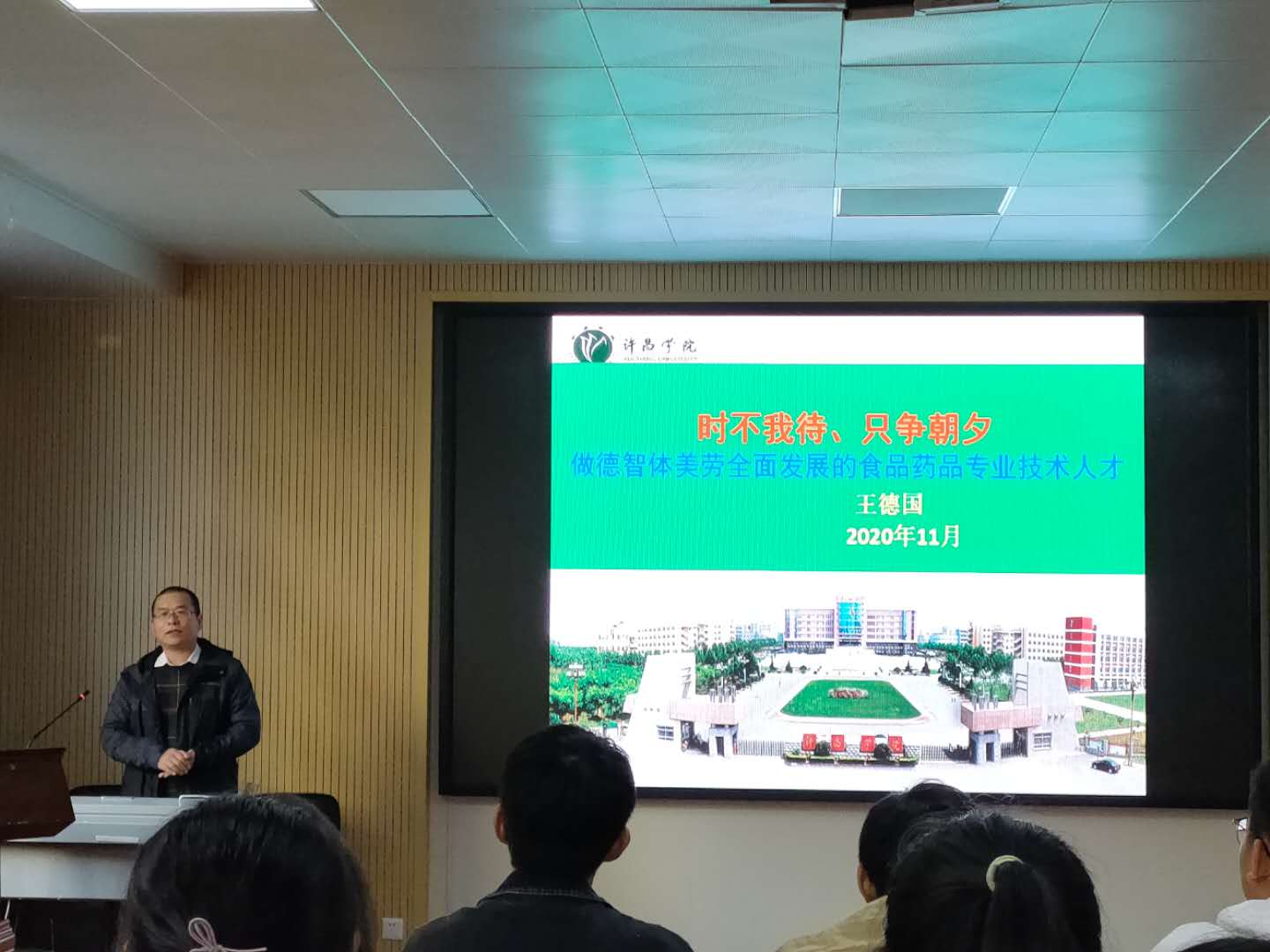 为了使新生更好的了解所学专业的相关知识,对未来做一个合理的规划,11月10日下午,我院于食药楼二楼报告厅举办了第一次专业导论课。本次专业导论课特邀王德国院长进行讲解。