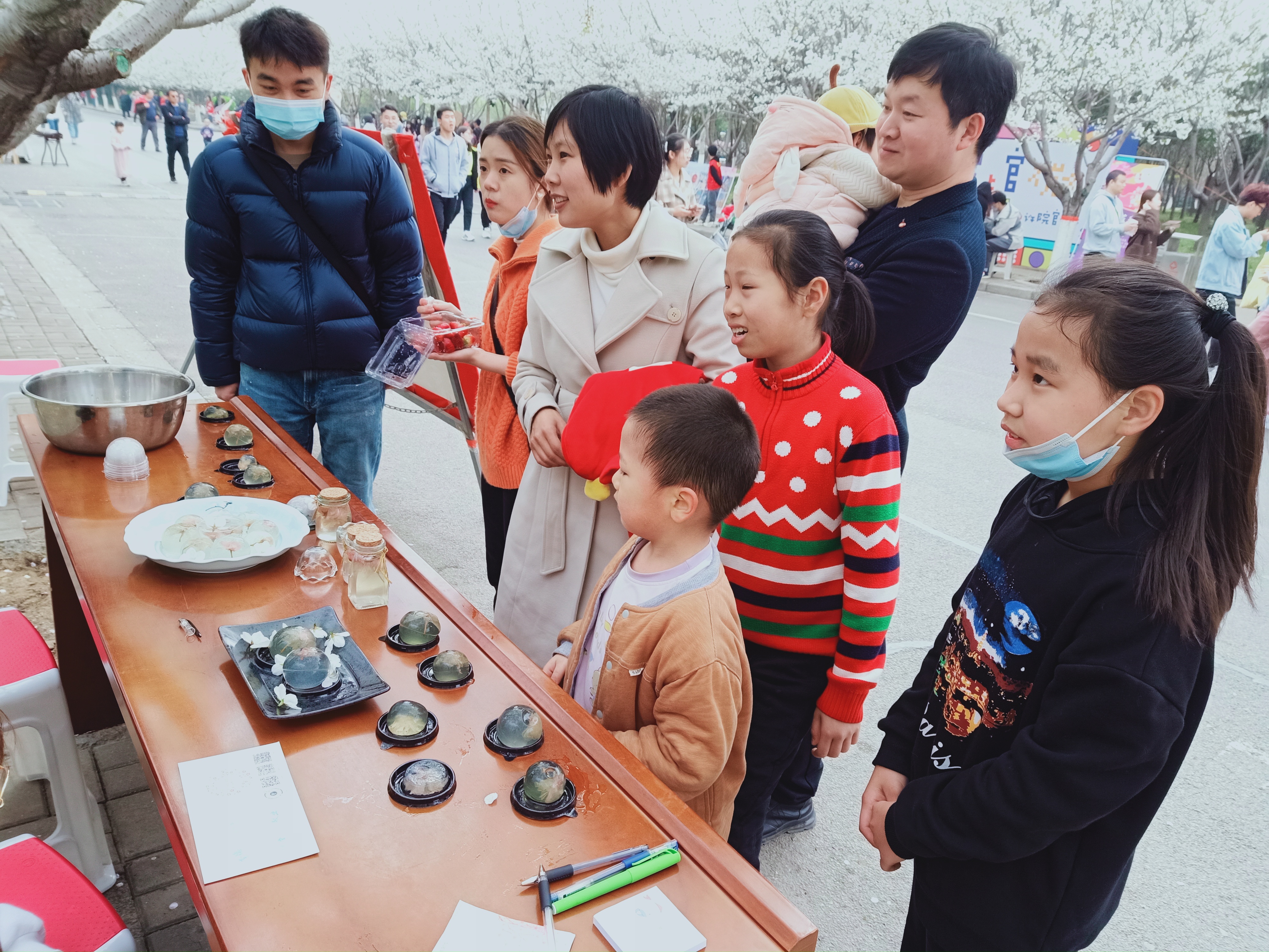 3月14日,在永利集团官网第四届樱花文化节中,我院食品安全与营养协会积极发挥自身专业特色,添加创意元素,制作了晶莹剔透的水信玄饼,在樱花大道展出,供游客们观赏。
