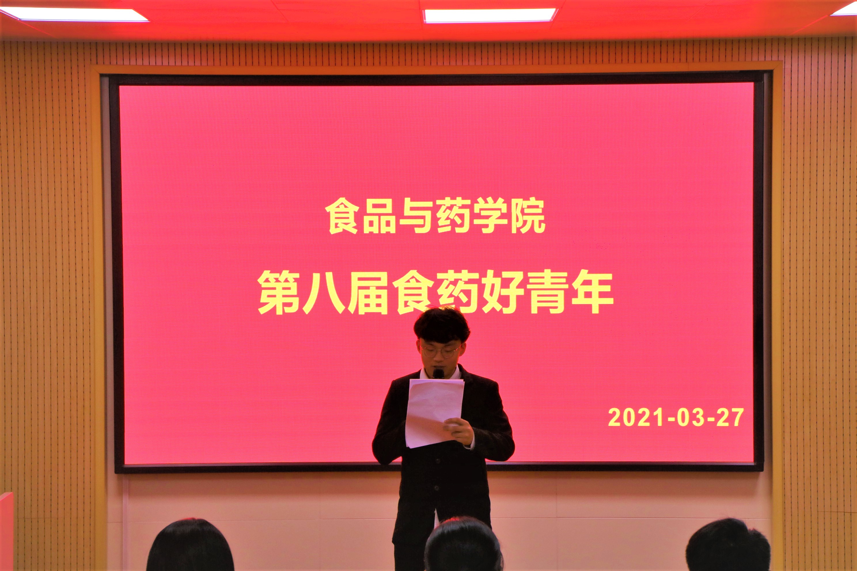 3月27日上午12:00,yl8cc永利官网第八届“食药好青年”年度人物评选活动于食药楼报告厅圆满落幕。yl8cc永利官网17级辅导员韩彦航 、19级辅导员杨晓露、20级辅导员王曼琪以及部分第七届“食药好青年”获得者担任评委,20食工2班安益平作为主持人。