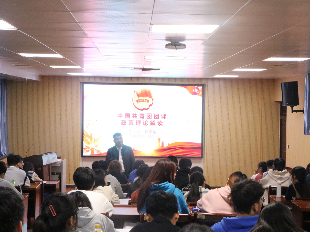 会议后期,李凯歌同学向大家提出“坚定理想信念,明确奋斗目标,知其然,知其所以然”的要求,并对学生会联合章程、中华全国学生联合会、团学一家亲等概念进行解读,以《毛泽东选集》为依据,向大家传播积极的思想。接着,韩彦航老师围绕为同学服务、科学“瘦身”方能激发活力等方面,对中国共青团课政策理论进行详细介绍。最后,韩彦航老师对整个大会流程进行总结,并且欢迎新成员加入学生会及团委这个大家庭。