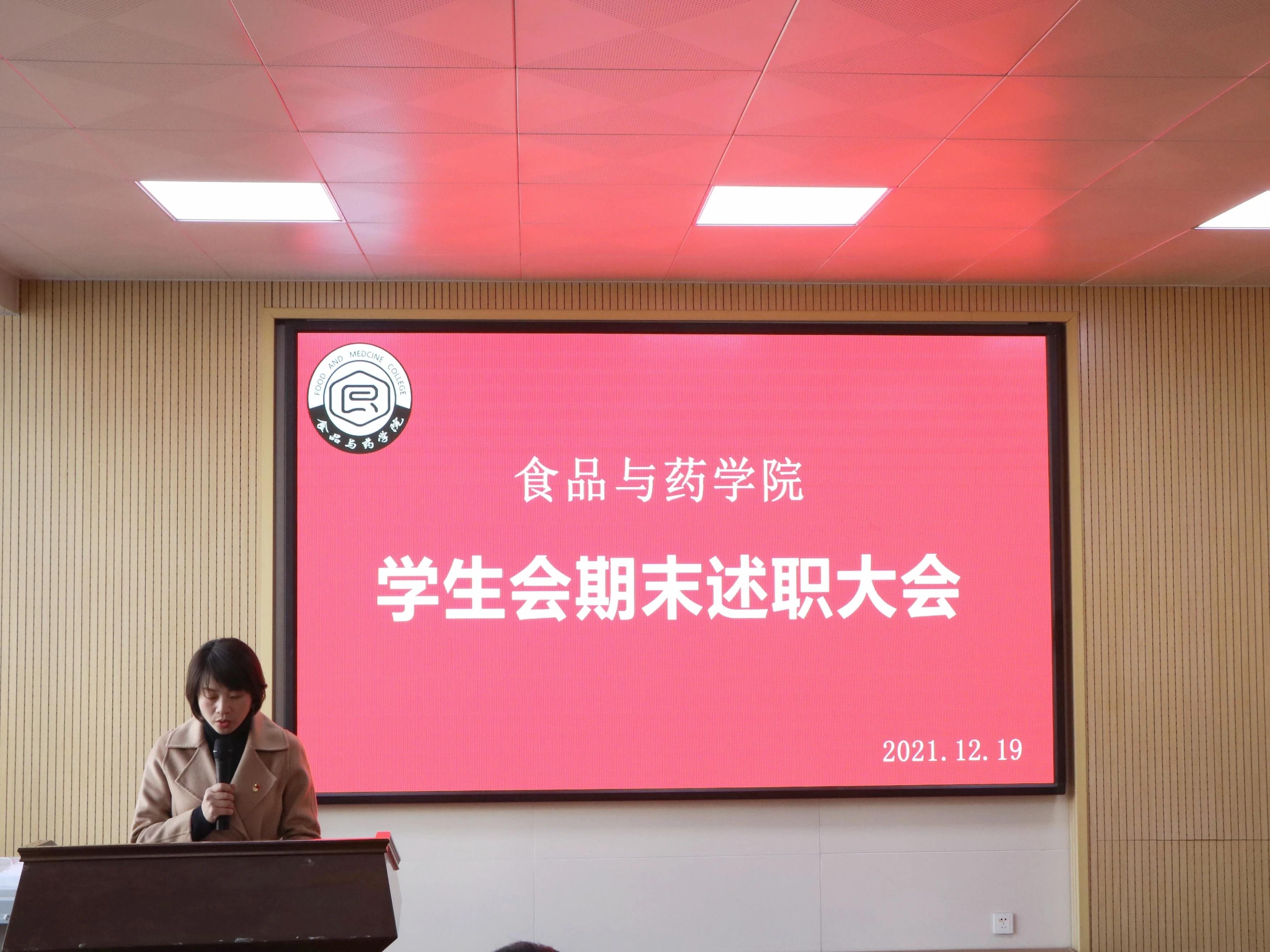 为了更好地总结本学期的工作,进一步加强我院学生会自身建设,保证下学期工作顺利、高效的开展,12月19日10点,我院学生会在食药楼二楼报告厅召开了21-22学年第一学期期末述职报告大会。出席本次会议的有yl8cc永利官网党委副书记曹玉松、团委老师韩彦航、20级辅导员王曼琪、校学生会宣传部负责人孙文静,我院学生会全体组织人员及志愿者。