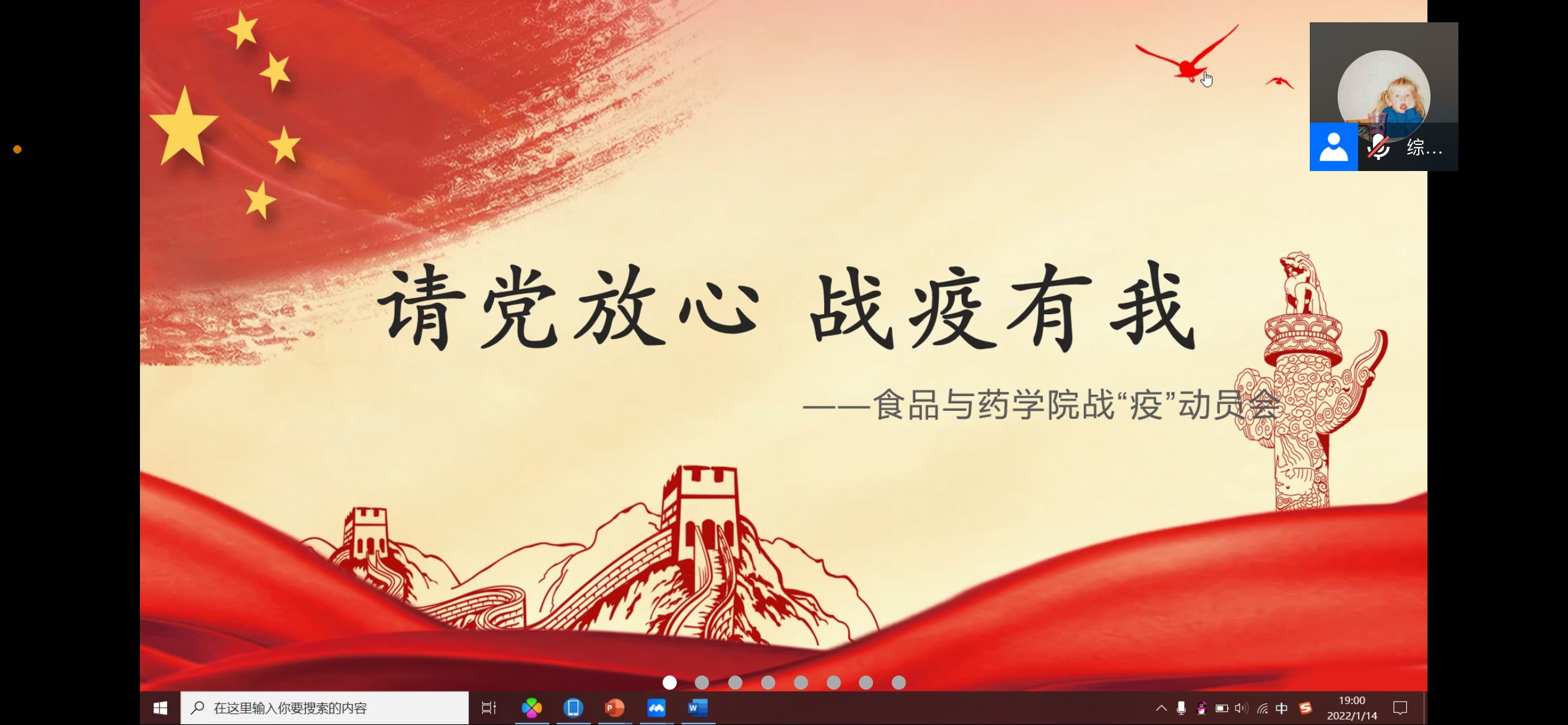 为号召同学们积极参与疫情防控工作,展现我院学生会成员的责任与担当,1月14日晚7点我院学生会在线上召开了“2021-2022学年寒假疫情防控志愿者动员大会”。出席本次会议的有团委老师韩彦航、学生会执行主席范丁心、学生会团支部书记杨旭以及学生会全体组织工作成员及志愿者,志愿者蒋文琪担任此次会议主持人。