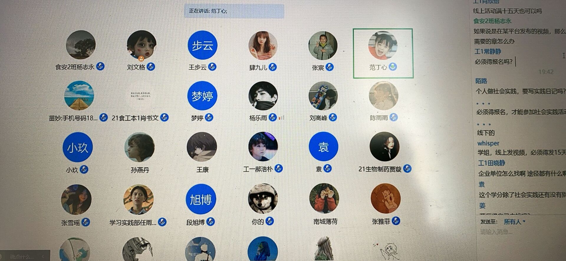 为加深同学们对寒假社会实践活动的理解,1月2日晚7点,我院学习实践部采用线上的方式就社会实践的基本内容等问题向同学们进行了详细讲解。出席本次会议的有学生会执行主席范丁心、学习实践部全体工作人员及部分志愿者、21级全体同学。