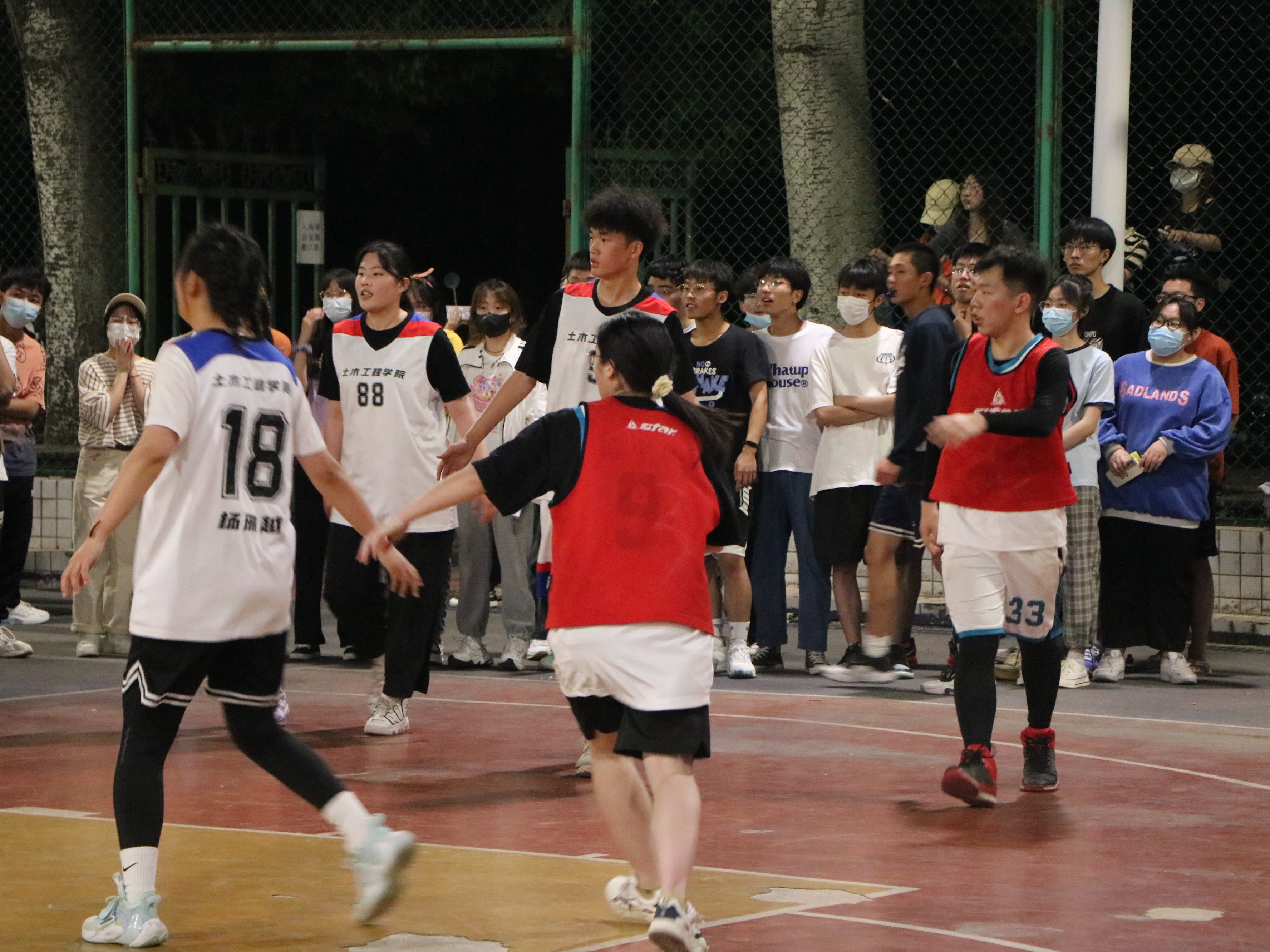 为缓解在校学生因校园疫情防控而产生的急躁、紧张等状态,又在不影响疫情防控的条件下,2022年4月下旬,我院积极参加校组织开展的“3+2”篮球比赛。