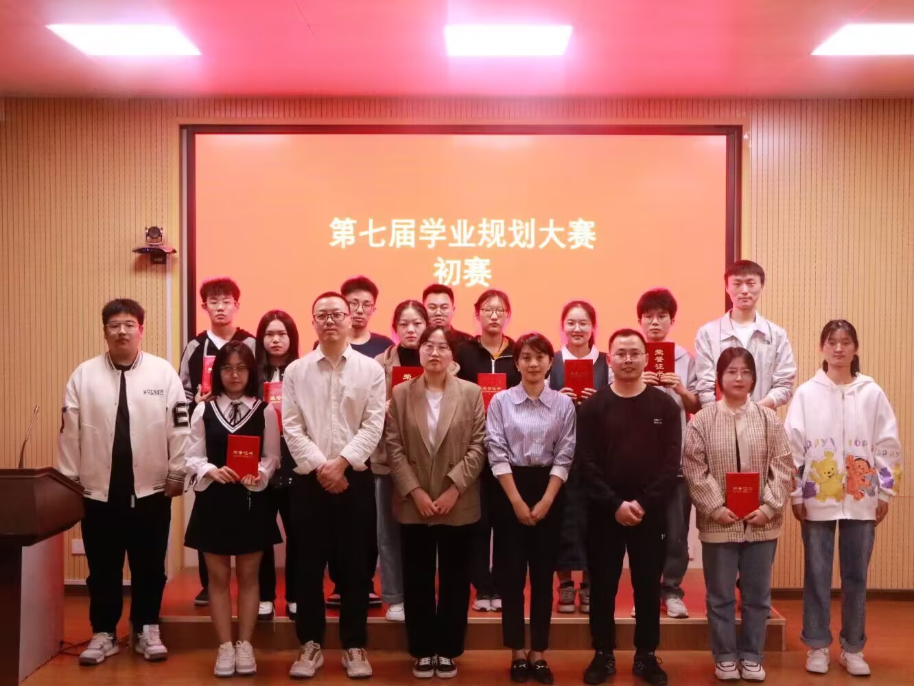 比赛前期,首先通过22级各班级推选出优秀成员,确定了参赛人员名单,接下来由学习实践部成员拟定学业规划大赛策划书,并交于主席团检阅,检阅合格后,开始筹办比赛。在此次活动中,各位参赛选手都准备的很充分,伴随着PPT一幕幕放映,选手们慷慨激昂地讲述着自己对学业生涯的规划。各位参赛选手都各具特色的讲述透露着学生对理想的憧憬,台下时不时地响起激烈的掌声,比赛接近尾声,由曹玉松老师和舒朋华老师对此次学业规划大赛作了总结。随后,主持人公布了各位参赛选手的分数,宣读了获奖人员名单,最终大家一起合影留念。参赛的选手们在本次比赛中大放异彩,杨圣杰、杜景怡获得一等奖,范翔宇、陈俊宇、黄倩茜获得二等奖,李少珊、郭婷婷、吴昱锦、王晓林获得三等奖,樊淑贤、田宇、房靖晶、陈宇博、叶慧钰获得优秀奖。