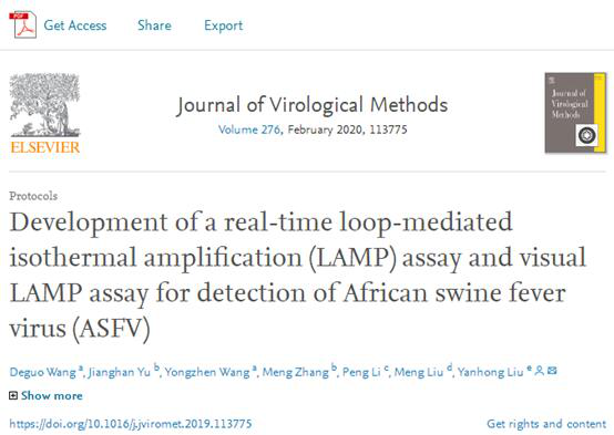 我院食品安全生物标识快检技术科研团队在非洲猪瘟检测研究方面取得重要进展