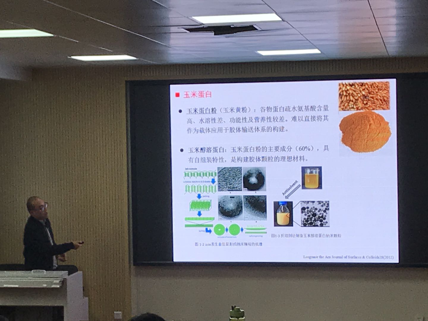 报告会上,王永辉博士为我们介绍了两亲性片段蛋白自组装及食品功能因子输送研究。食品中疏水功能因子无法直接作为营养强化剂在食品加工中直接应用。因此,如何在食品中有效添加此类功能因子是当前食品工业面临的一个难题。食品胶体输送体系的构建为食品功能因子在工业中的应用提供了一条重要途径。通过改善疏水植物蛋白的功能特性,可有效提高其在食品工业中的利用价值。限制性酶解是提高疏水植物蛋白功能性质的重要途径。通过对疏水谷物蛋白的限制性酶解,并结合色谱分离技术可制备具有自组装功能及胶体输送能力的两亲性片段蛋白(AFP)。利用AFP作为功能性因子输送的载体,不仅能够丰富蛋白质在胶体输送中的应用途径,还能够显著提高谷物蛋白的应用价值。